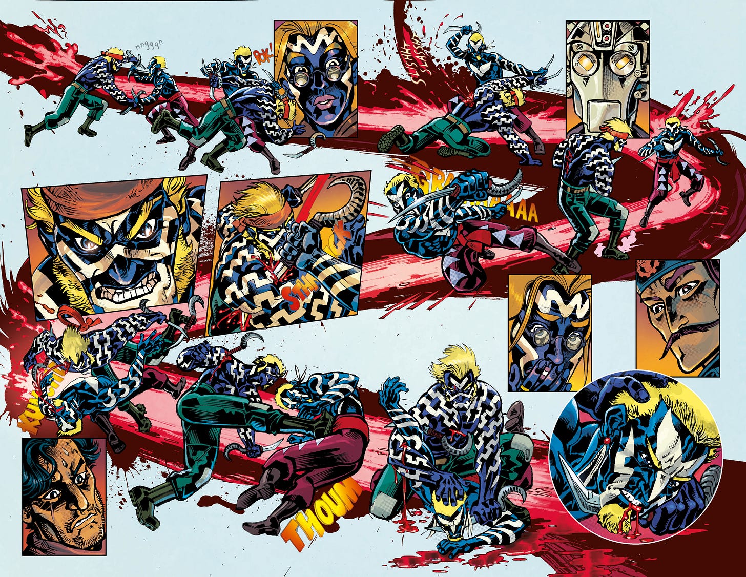 Free Planet has been designed to achieve novelistic depth not despite the comics medium but through it. This entails my thumbnail-led writing approach, Jed’s unmatched page layout genius, and both of our hyper-specific, expectations, requirements and directions vis-a-vis color and lettering. It’s the reason why Free Planet looks and reads unlike any other comic.